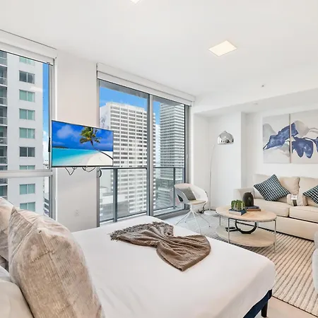 The spacious 1-bedroom Modern Luxe Studio In Downtown Miami With Rooftop Pool And Gym is located 900 m from Bayfront Park train station and approximately a 5-minute walk from the Dorado Resort.